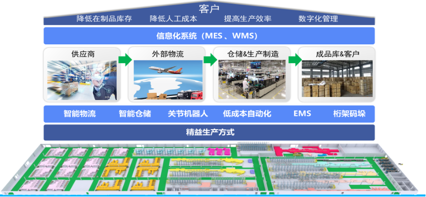 解决方案实施先 “精益诊断”,依托JIT管理理念,融合物料供应、连续流模式、拉动式生产、节拍时间和弹性人员匹配全方位综合落地智能设备,确保解决实际问题;