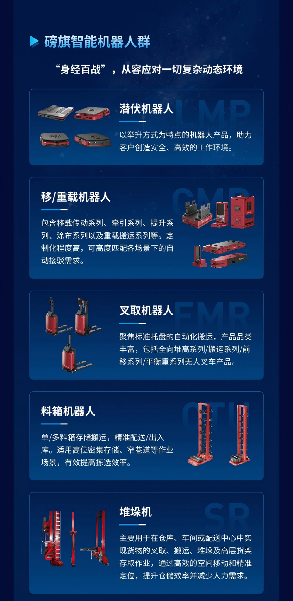 其次,这套智能系统需要强大的“物理执行体”。这正是磅旗构建业界领先的全栈自研硬件产品体系的初衷。“智能机器人集群”是核心执行单元,分为三个层次: